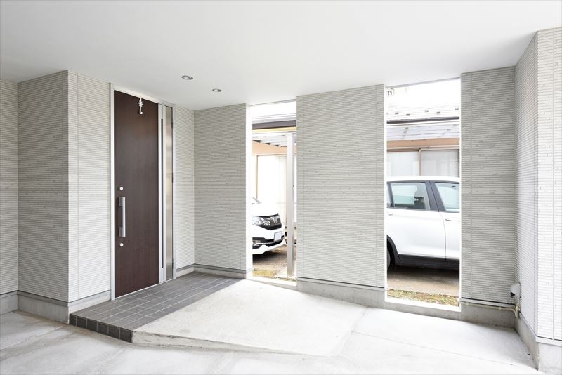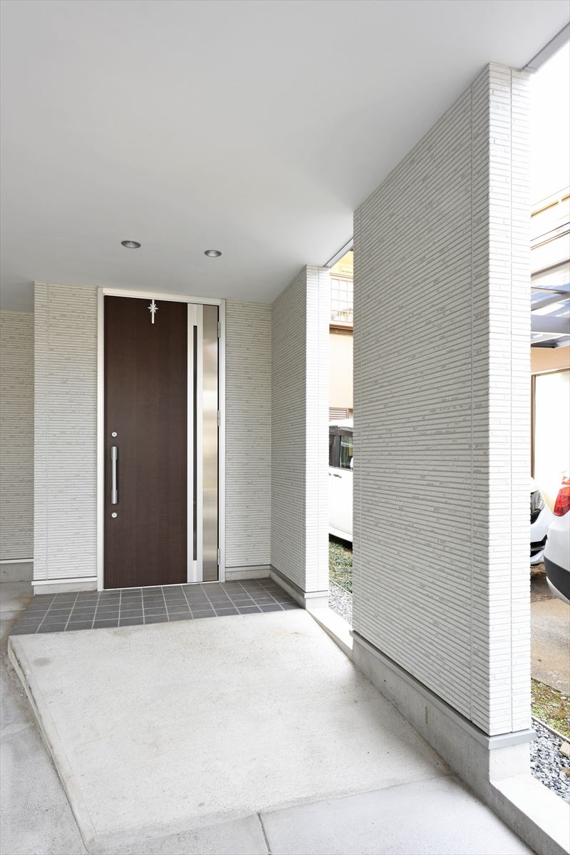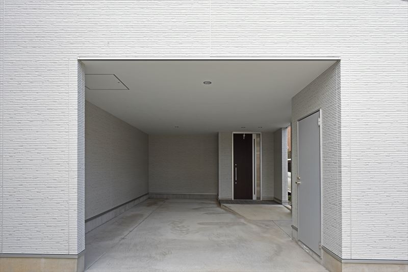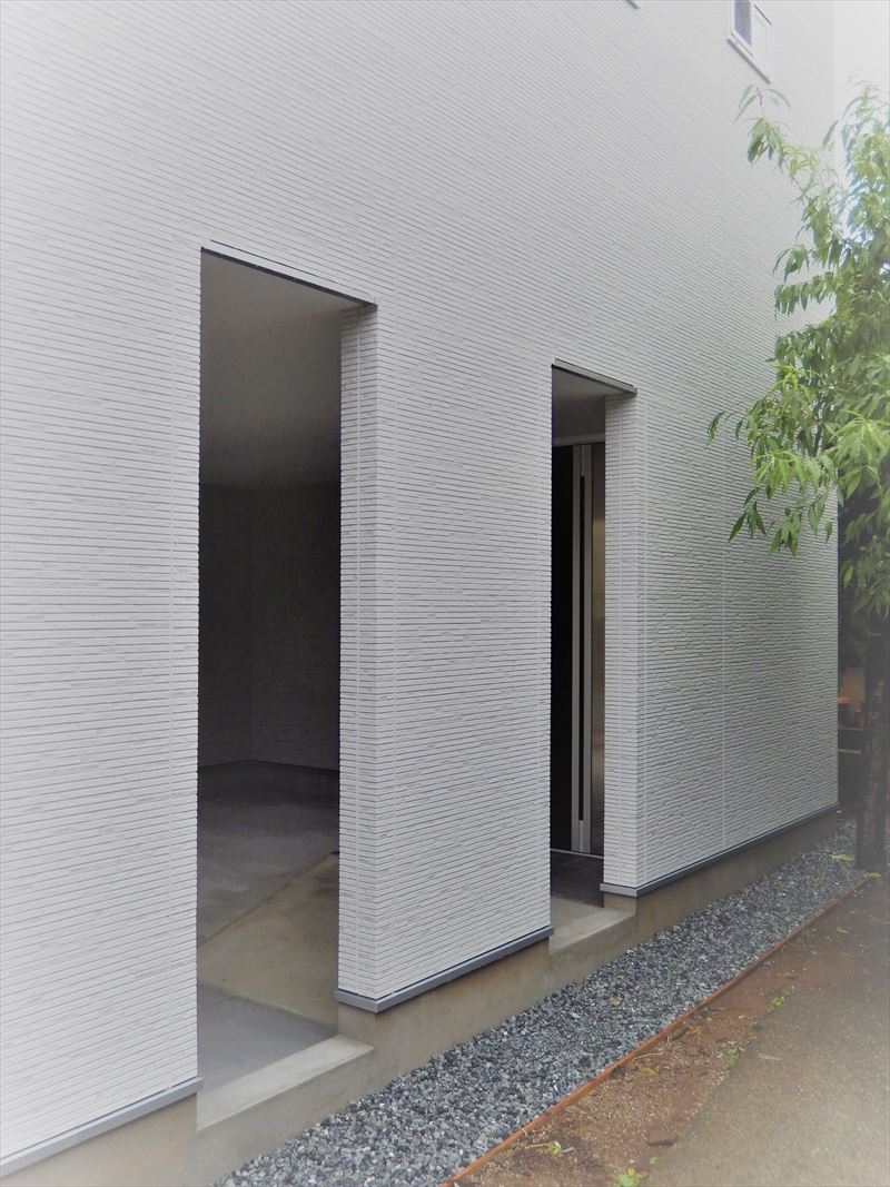 弊社設計施工の在来工法住宅です。外部空間はホワイト&シルバーで構成されています。